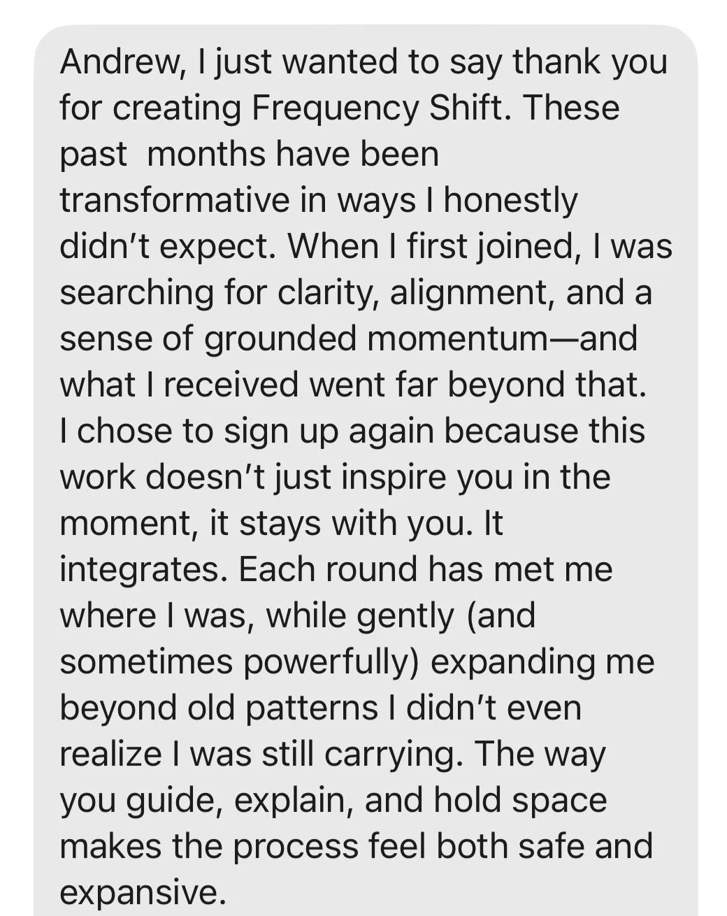 Frequency Shift is a 4-month 1:1 recalibration that evolves as your system does.